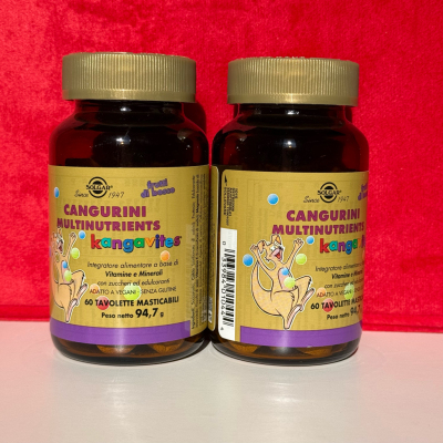 Solgar Multinutrients Cangurini儿童多种复合维生素和矿物质咀嚼片 60片装专为三岁以上儿童设计的综合维生素,营养成分全面,维生素、矿物质、胆碱、蔬果精华等,全面保障儿童健康,清爽水果味,小孩子们的最爱每天一片,轻松补充儿童每日所需营养。👶🏻👧🏻